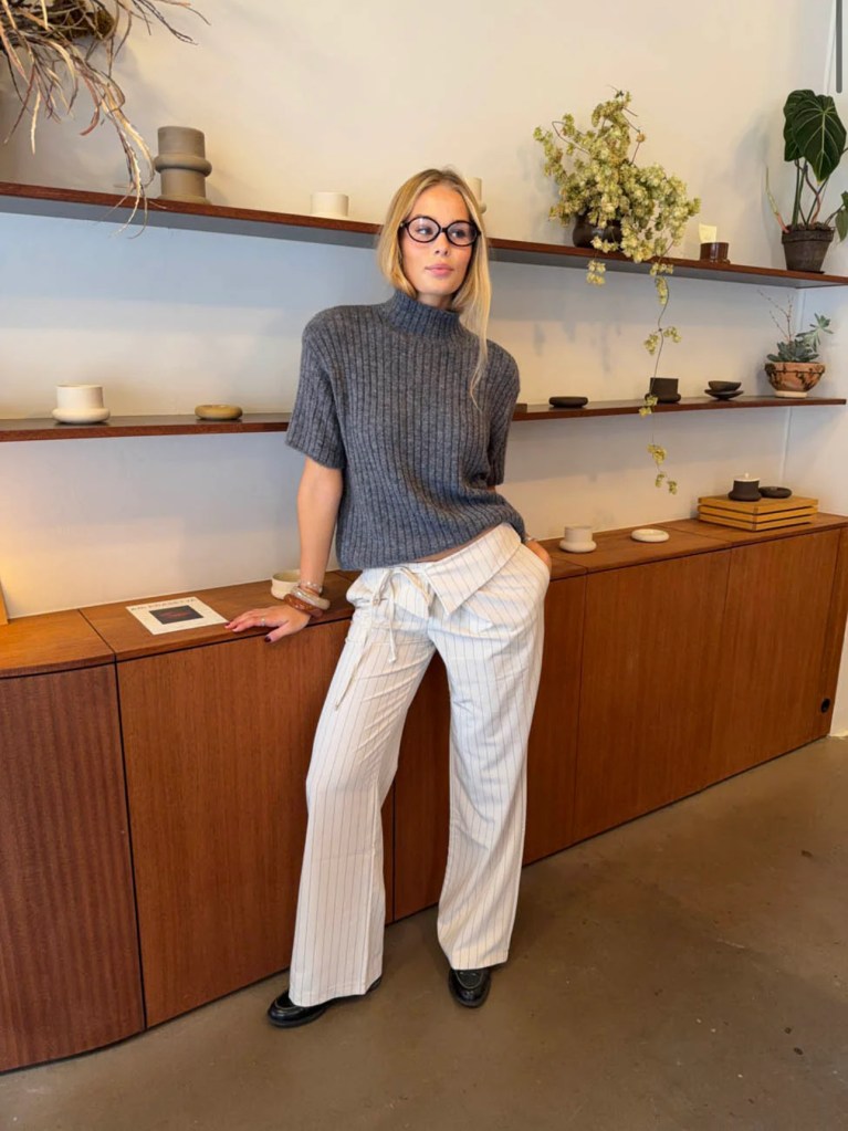 The AVELINA TROUSERS WITH TIE BELT is the perfect elevated basic. With the striped pattern and fold over waist detailing, this pant is totally haute. Paired with a sweater for a relaxed look, or a blouse for more formal wear, these trousers have a sophisticated tone with an edgy twist perfect for any occasion.